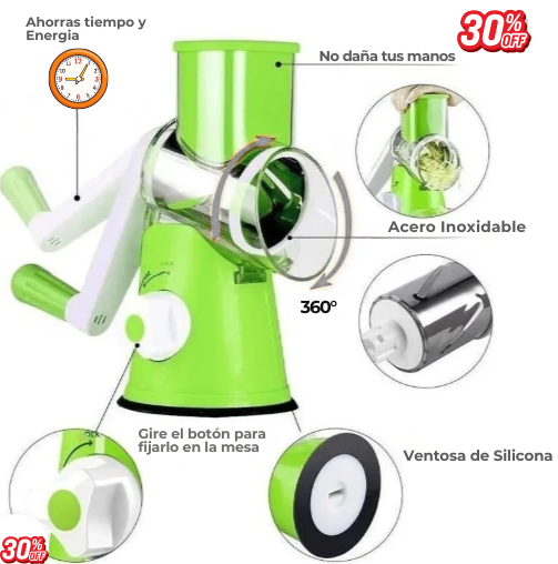 🛡️ Máxima Seguridad: Su diseño giratorio tipo tambor protege tus dedos de las cuchillas. ¡Cocina con total tranquilidad y sin riesgo!