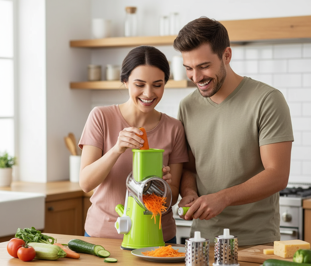 ¿Cansado de perder tiempo y poner en riesgo tus dedos con cuchillos y ralladores inestables? Con el Chef Express 3 en 1, transforma la tediosa tarea de cortar y rallar en una experiencia rápida, segura y divertida.
